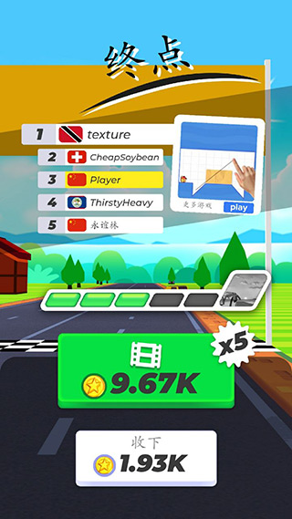 3、玩家可以在游戏开始前使用金币提升自己的车辆等级,增加车辆的耐久并装备各种有趣的物品。