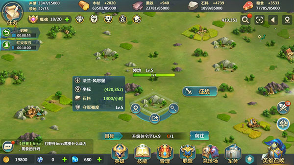 在升级建筑的同时,领主征战领地、升级英雄的脚步也不应该停歇。多占领一些4级地,增加资源产量的同时,也能升级英雄等级。