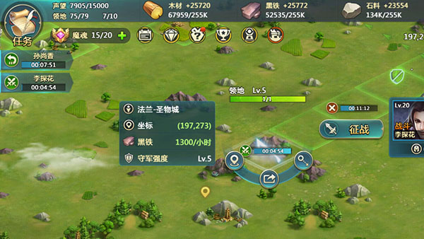 2级地基础守兵只有600,易于占领,同时资源产量也远大于1级地。领主们只要稍微提升英雄等级,征募足够的兵力,就可以轻松拿下2级地。因此,在完成任务要求的占领1级地之后,占领2级地将是一个更好的开局资源拓展选择。