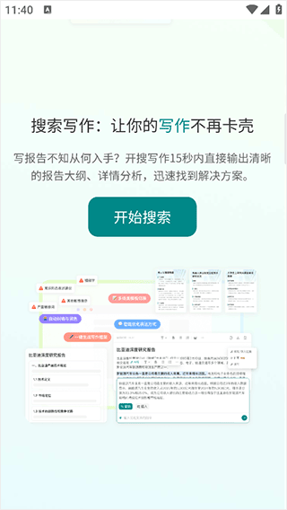 2、写报告不知从何入手?开搜写作15秒内直接输出清晰的报告大纲、详情分析,迅速找到解决方案