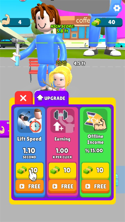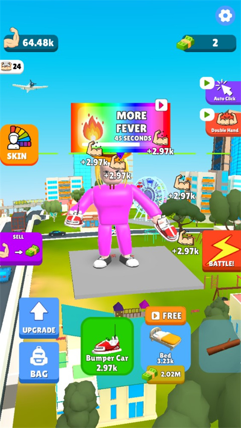 肌肉甜心最新版是一款十分有意思的举重模拟类手游,各位玩家们将会在游戏中成为一名举重选手,你的任务目标就是举起更多的重量,举起的重量越多,你可以获得的奖励就越丰盛,也能够解锁更多的道具物品,比如哑铃、飞机、火箭、飞碟、陨石等等,不同的道具能够给你带来的分数加成也不同,越大的物品加成就越多,所以需要玩家不断进行举重新的物体。
