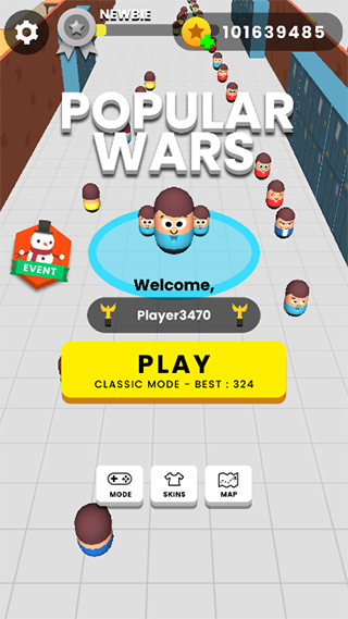 大众战争手机版是一款十分有趣的大作战游戏,英文名叫Popular Wars,拥有快节奏的游戏进程,玩家们需要在规定的时间内出色的完成各种挑战。在游戏中你需要控制您的角色在城市中寻找白色小人,让白色小人变成自己队伍的人,不断的扩张队伍人数。因为游戏中还有其他队伍,要是其他队伍人数比你多,那你就会被对方吞噬掉,要是其他的队伍人数比你少,那么你就可以赶紧追上去吞噬他壮大自己了。另外大众战争游戏还设有造型皮肤系统,各种华丽的人物造型、皮肤光圈和表情,无疑为你休闲娱乐之余增添了许多乐趣。