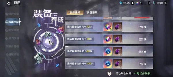 第二个注意点就是活动中的装备养成之类的活动时间,为了吃满奖励,要在第三天第四天将体力重点花在装备刷取次数上。