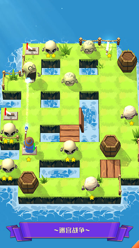 迷宫战争官方版是一款非常优质的策略闯关游戏,其背景设定在一个正受到怪物袭击的中土世界,玩家将在此扮演一位英雄去拯救这个悲惨的世界,支持控制和招募自己的士兵来与怪物对战,士兵的位置移动以及物品的摆放位置都极其考验的策略头脑,一个不小心就会导致全盘皆输。该游戏采用的是3D画面风格打造,整体以卡通画风为主,里面的主角和怪物建模都非常益智的样子,玩家需要在规定的时间内消灭掉全部的怪物才算获胜,因此士兵位置摆放极其关键。此外,迷宫战争游戏里面的关卡众多,每一关里面的怪物也都是不一样的,玩家可以装备上不同星级的武器来对决,还提供了丰富的陷阱以及角色技能,让你感受无限的游戏魅力。