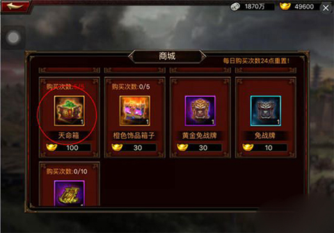 橙色与红色装备碎片也可在三国无双的神装商店中购买,以上都是眼见为实的获取途径,还有一种拼人品的装备获得法——天命箱。听听这名字,起的多有水准,一切都是命啊!
