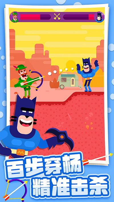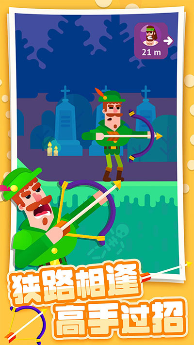 弓箭大师官方版是一款即时对战射击类游戏,玩家在游戏中通过控制角色的位置和弓箭的力度与角度,来射击对手并完成任务。游戏提供了多种角色供玩家选择,每个角色都有独特的武器和技能。
