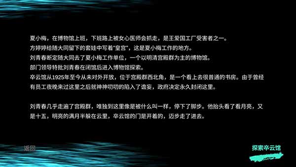 孙美琪疑案夏小梅游戏是一款黑暗风的宫廷悬疑解谜游戏,也是主线《孙美琪疑案》的第十一部DLC作品,故事剧情环环相扣,引人深入思考,从最初的孙美琪案件疑点,到第二个故事方婷婷案,第三个故事王思凤案,以及承接的王爱国案和现在的夏小梅案件,整个系列可以当成一个作者以猎奇为出发点写的一个放飞自我的长篇小说,其中几大集团及其繁杂的人物关系是解密的最大障碍。虽说解谜玩法依然同前几个游戏一样的套路,都是通过调查现场的物品、文字、行为痕迹来获得线索,再通过分析线索推理出案件真相,但剧情却随着玩家扮演的刑警刘青春的侦察层层展开,你会发现故事里出现的每一个名字都有令人毛骨悚然的故事。游戏中另一大特点就是将线索按照重要程度分成不同等级,形成一个“金字塔”,从底层信息开始筛选调查多种线索,结合解开所有关键谜团后,才能解锁唯一的真相。