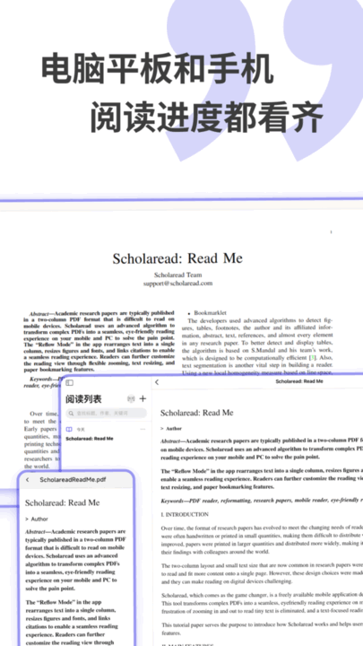 Scholaread (靠岸学术)是一款集论文 PDF 阅读、学术翻译、文献管理、笔记等功能于一体的工具,其创新的 pdf 排版解析算法和逐段对照的全文翻译功能,帮助你在手机、平板、电脑、网页都能同步阅读管理和记录中英文文献,还能一键同步 Zotero 论文库,大大提升学习效率。