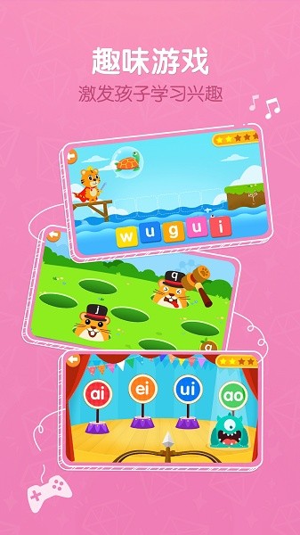 形式活泼:有别于传统的拼音教学,贝乐虎拼音将课程和互动游戏巧妙地结合起来,让孩子在玩耍的过程中,不知不觉完成拼音启蒙。