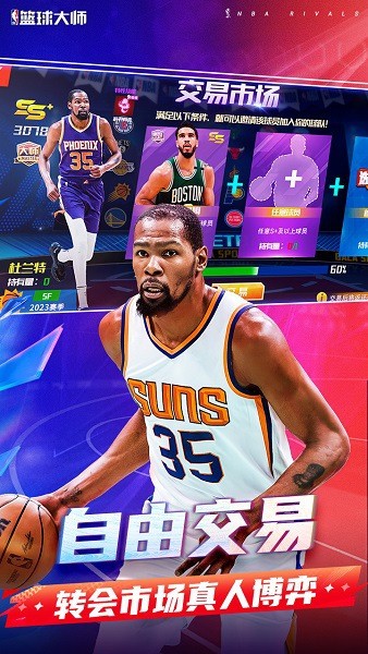 你将亲自操刀,打造一支巨星球队。 “水花兄弟”、“热火三巨头”、“GDP”等传奇阵容任意搭配。 甚至你还能在勇士队阵中加入奥尼尔和邓肯的“双塔组合”。 交易经营中的运筹帷幄,联盟对战时的烽火硝烟,逆境绝杀后的热血沸腾。 王朝更迭,巨星闪耀。在这里,应有尽有!快来开启专属你的篮球故事吧!