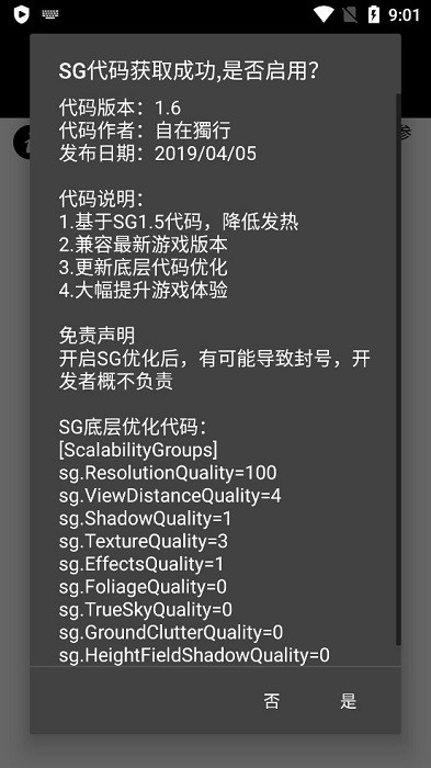 Tips:长按【解锁/关闭画质帧率】,【开启/关闭SG优化】即可关闭功能,适用于解锁帧率和SG优化。