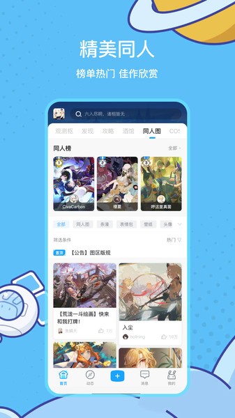 米游社涵盖了多款热门游戏的官方资讯,包括《原神》《崩坏3》等,还有各种活动周边和同人作品。App特色鲜明,分为专享资讯、冒险指南、实用工具、大佬攻略等多个板块。其中,“冒险指南”提供《原神》专属工具和签到福利,帮助玩家轻松获取游戏资源;“实用工具”则包含战绩查询、手帐札记等功能,方便玩家记录和分享。