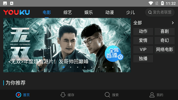优酷hd平板是为安卓平板用户提供影视视频播放观看的应用平台,精选热门推荐,剧集、电影、综艺、动漫、娱乐等一网打尽,一键搜索直达,视频播放高清流畅,支持在线缓存,我的看单、历史记录一目了然,随时随地想看就看,涨跌推荐!