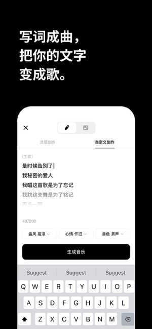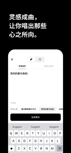 仅需输入一句灵感,便能让你的创意变成美妙旋律,开启专属音乐创作之旅。