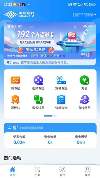 这款歌华有线手机版真的挺方便的,功能超级多,基本上涵盖了广电5G、宽带和有线电视的各种服务。首先,首页会显示各种通知和产品推荐,特别适合了解最新活动和优惠。我最喜欢的是5G专区,绑定手机号后就能随时查看话费和流量,还能预约开户,感觉特别贴心。