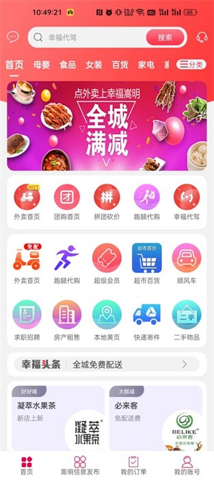 幸福嵩明app,一款专门为当地的人们的打造的同城服务软件,将吃喝玩乐、招聘求职、外卖跑腿、同城交友、新闻资讯等多项服务融为一体,打造了智能便捷的服务平台,让你直接在手机端就能轻松打造便捷生活,实用性极强,有需要的朋友快来下载用起来吧