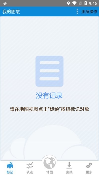 在91卫图助手的标记板块,点击右上角的图层操作选项。