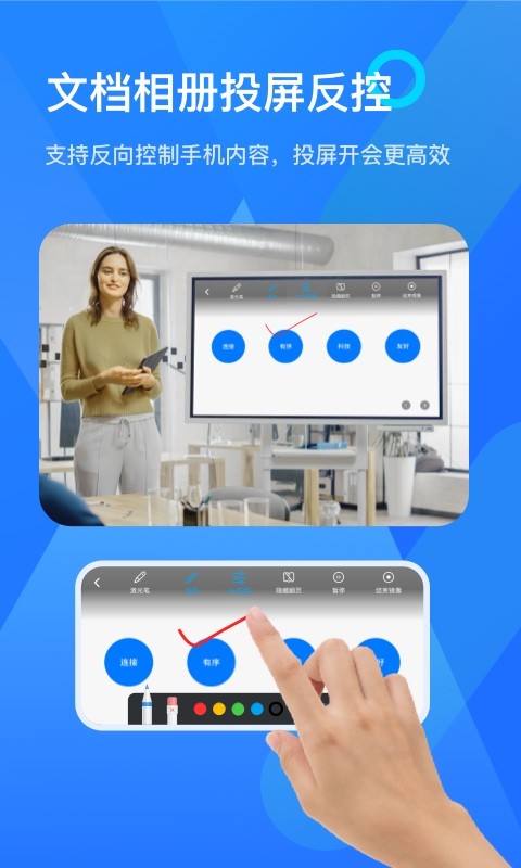 手机/电脑上开启“允许反控”,就可以在大屏上反向控制小屏端内容。不仅可以在大屏端通过遥控器进行翻页,也可以在触摸屏上直接完成放大缩小、手写标记等操作开启【隐私模式】只勾选想要投屏的照片/视频,投屏后即可自动隐藏相册里的其他内容,手机上收到的消息提示也不会显示到大屏上,有效保护个人隐私。