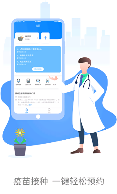 2、接种在线预约:手机在线随时预约接种时间,减少排队等待时间。