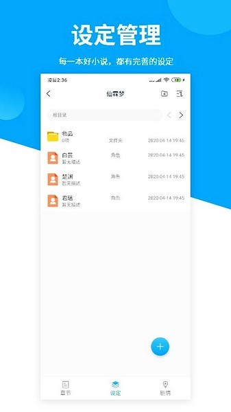 2、小说设定管理: