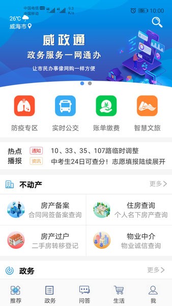 威政通爱山东威海app(核酸检测报告查询)是一款服务于威海市的便民平台,软件的功能涉及到了市民朋友们生活的方方面面,比如实时公交,一键查询公交位置,手机支付,出行更方便;防疫专区,疫情防控,人人有责,手机查询核酸检测结果,更快捷。