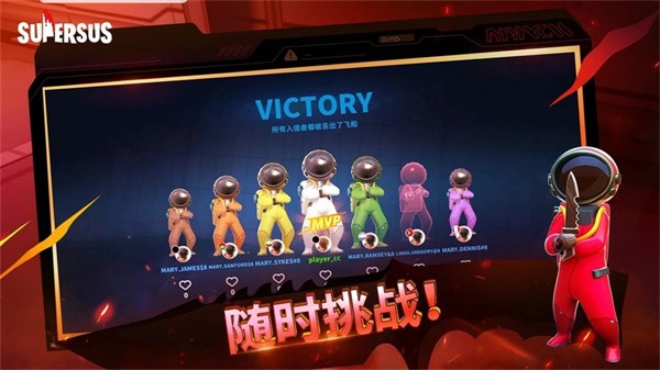 在Super Sus中,你可以与世界各地的玩家进行比赛。体验经典模式或在排位赛中挑战更多玩家! 更有实时语音聊天与其他玩家聊天! 无论是否生存到最后,你都会结识来自本地或世界各地的朋友。时刻小心内鬼!你也可以在UGC中分享惊人的想法,创造自己的专属地图和角色。