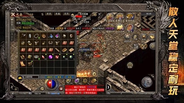 打金玩法:超高爆率,装备回收,元宝自由流通,玩家可通过打怪升级、挑战BOSS轻松获取神装和元宝。