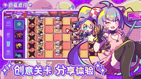 《盲盒派对》是一款二次元风格的策略塔防手游,结合了经典“植物大战僵尸”的玩法和独特的盲盒设计。游戏中的角色形象可爱且各具特色,每个角色都有独特的战斗武器和技能,比如用饼干、键盘甚至CD攻击敌人。场景设计也非常丰富,有蛋糕、梦境、音乐等多种主题房间,玩家可以在这些有趣的环境中守护家园。