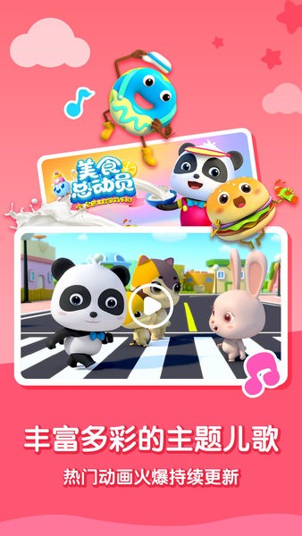 益智互动:跟着卡通动物哼唱儿歌,和熊猫奇奇一起制作美食等。