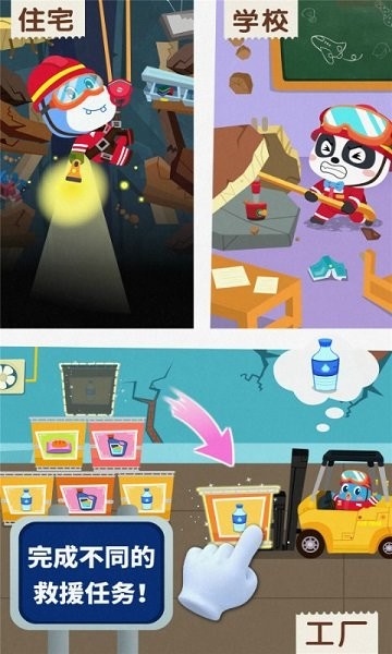 游戏里有很多救援任务,比如灭火、救伤员什么的,还有各种救援装备可以选,飞机、汽车、无人机都能开,感觉像个小英雄一样。场景设计得很真实,地震时的慌乱感和紧张感都表现得很好,玩的时候既能体验冒险又能学到知识,挺不错的!