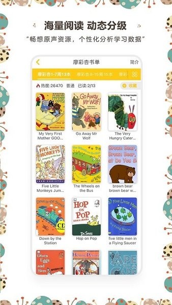 2、为用户智能的去推荐相应的绘本能资源,绘本列表会详细的展示;