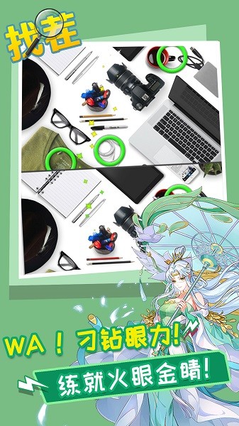 美少女的异色瞳,挑战1000+关!秋天快乐,《开心找茬找不同》收获季节来找茬!眼力挑战,经典找不同!在游戏中,会有许多类型的图案,他们都有很细致的不同的地方,玩家需要快速找出不同!