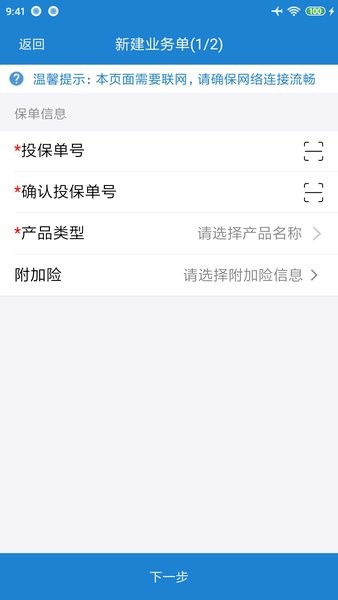 1、营销员登录以后可以创建新的任务,创建任务分为基础信息录入模块和影像采集上传模块。