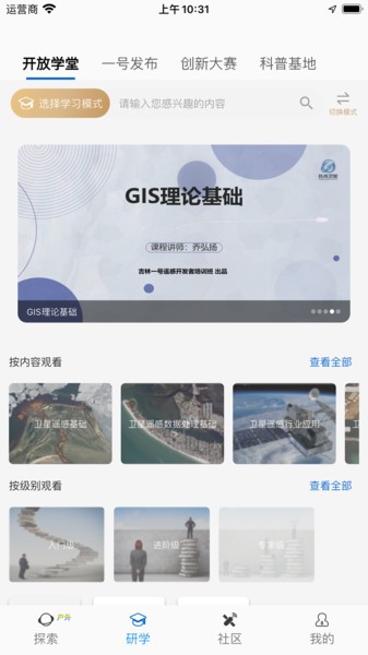 --包括星林社区、科普基地、开放学堂、一号发布、创新大赛、实验室、遥感商城等模块。围绕服务企业级开发者,研学机构和行业爱好者用户提供深度服务;
