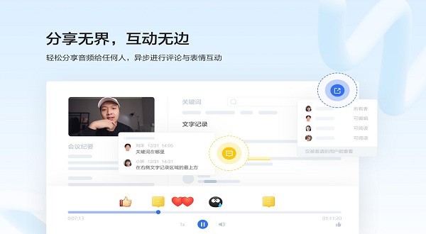 轻松分享音频给任何人,异步进行评论与表情互动。