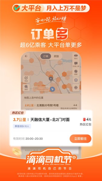 4.多样订单,一键稳赚:实时派单随时轻松接,更有预约订单规划你的长线生意.