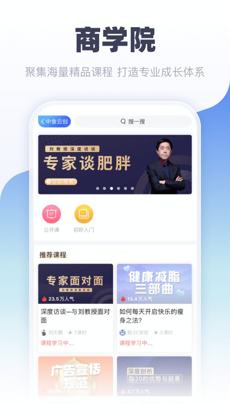 中食云创官方平台是一个提供健身减肥服务的应用软件,主要是帮用户定制专属瘦身计划,并通过健康数据追踪来了解身体状态,还能给专业建议。它还有个云商城,可以买商品、学课程,线上线下结合,感觉挺全面的。这个平台还支持和一些体脂秤连接,自动同步数据,还能分析体检报告,提供1对1跟踪服务。另外,里面有很多精品课程和营销推广的内容,看起来资源很丰富。作为一个科技控,我觉得这种结合了科技和人性化的健康服务真的很赞,对于想减肥又不知道怎么开始的人来说应该挺有帮助的!