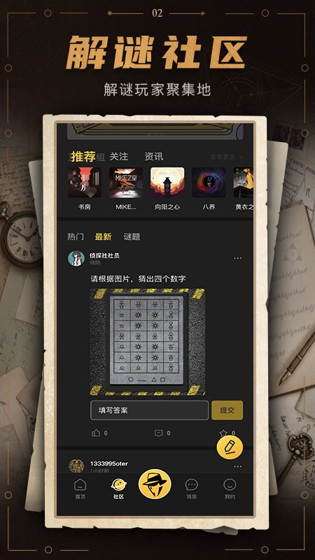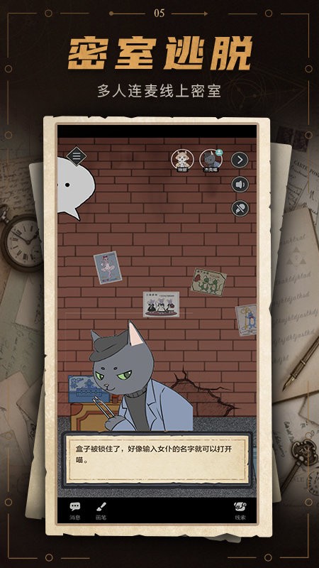 谜案馆游戏帮助大家在线上和小伙伴们一起玩耍,不管是脑力解谜还是密室逃脱,在这里都能够玩耍,还有很精彩的剧本杀和其他的侦探玩法,让大家在app中获得绝佳的探案体验,活动多多,让大家在玩耍的时候始终处于兴奋状态!