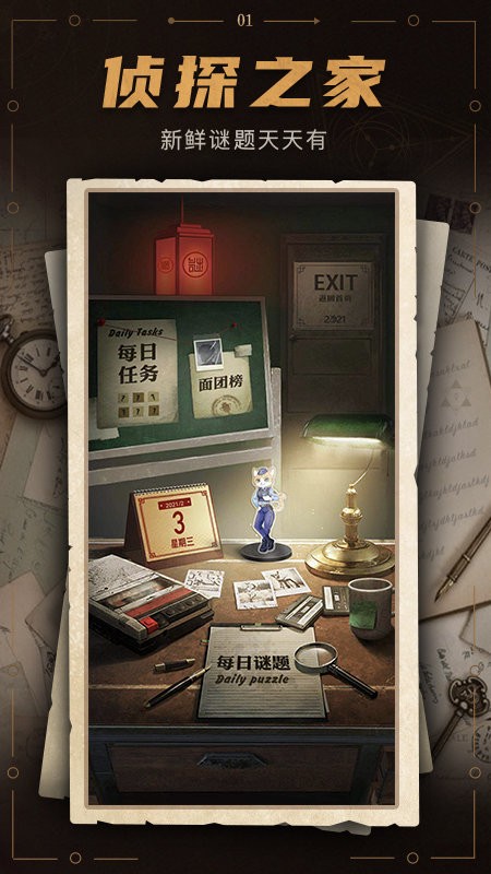 谜案馆最新版本上线!全新「侦探之家」场景等你来发现!重磅推出「商城」板块,面团兑换华丽主题&头像挂件,还有海量解谜书优惠券和线下密室折扣券等你拿!