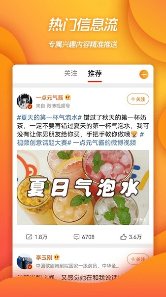 汇聚明星、红人、媒体热门事件等直播内容,在观看直播内容的同时可以实时与大V互动!同时,可自己发布直播微博并及时通知给你的粉丝