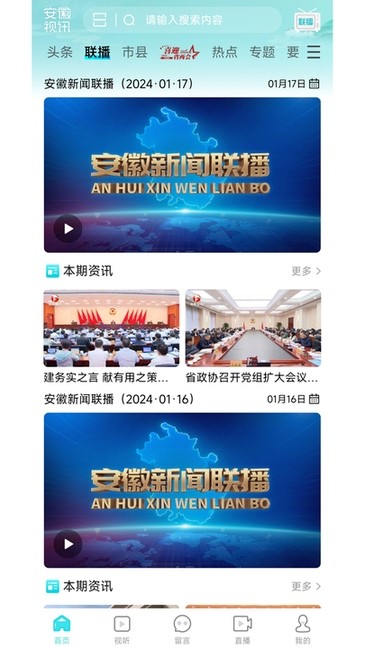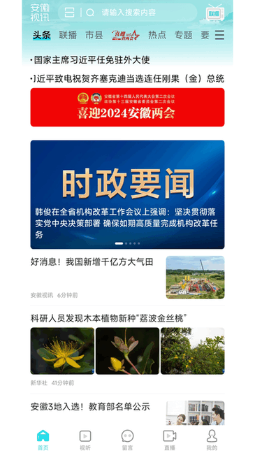 安徽视讯最新版是一款立足于安徽本地提供新闻资讯融媒体服务的应用软件,热门头条、联播、热点、专题、要闻等资讯内容实时更新,一网打尽,还提供精彩视频观看,可以在线看电视、听广播节目,发现发现更多精彩,实时互动,在线直播、分享,了解天下事!