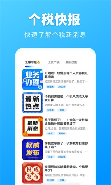 2、个税政策资讯:个税相关政策实时更新,工资薪金、税率、六项扣除、年终奖等相关问题重点关注。