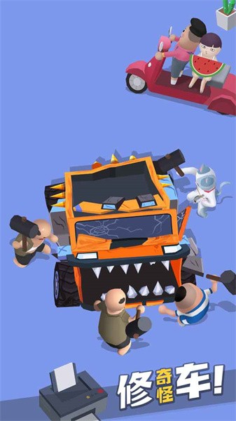 区别于市面上所有的开车打架游戏,这款游戏的特点是魔性沙雕,有20多辆奇怪的车可用,在广场上你能捡到吃瓜喷众、香蕉忍者、维修工匠、保镖大姐、智能路障、火焰酒鬼、水枪熊孩、撒币老板、飞机女孩、鸽子大叔、梦游睡神、秋名剑圣、飞盘二狗、侦察猫咪等14个有着各自奇葩技能的角色,从2座摩托到9座战车,通过不同的车与不同人之间的克制关系组建队伍能玩出无数的花样!