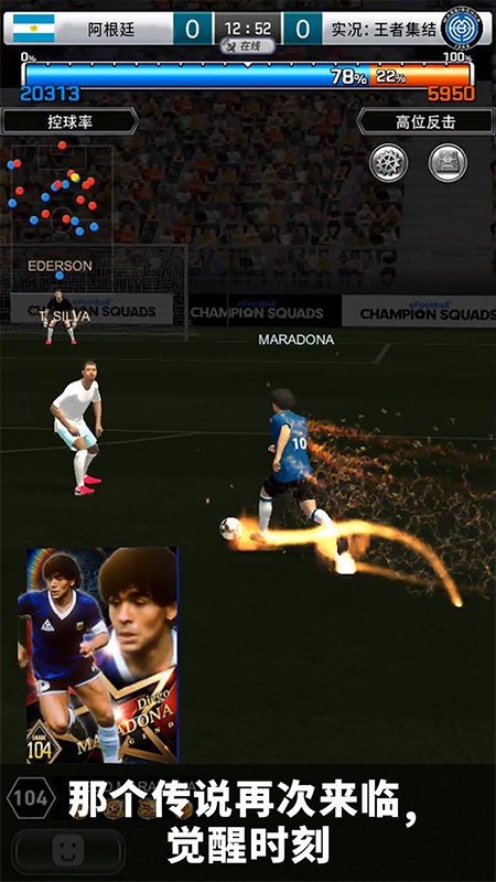 让玩家收集全球着名球员卡牌的足球游戏。《实况:王者集结》游戏可收集正版球员卡牌,尝试不同的阵型;除了创造最强阵容之外,也能通过强化球员体验培养新手球员的乐趣。另外,还能使用自己培养的球队,与其他玩家进行实时对战。您可在“实况”系列华丽的3d比赛中,使用贴图向对手传达入球的喜悦,以及失球的懊悔等情绪。之外,还能享受11人实时协力战的「11人战」模式,由11名玩家各自挑选出一名最强球员组成梦幻阵容。