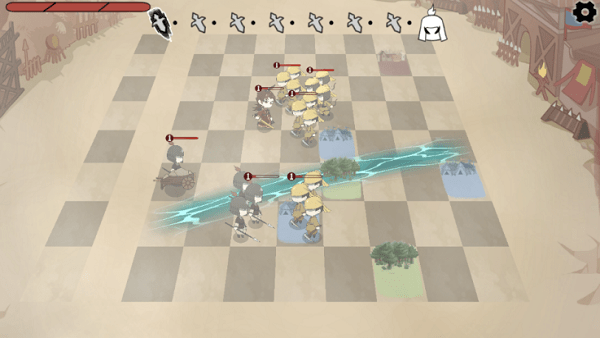 5、每一关开始前都可以购买棋子和升级大本营,铜币足够的话;不断的闯关,消灭最终的boss;