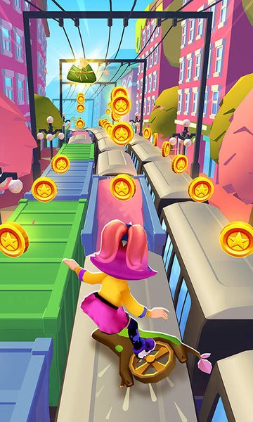 地铁跑酷国际服最新版是一款堪比神庙逃亡的经典跑酷游戏,在朋克的道路上不断奔跑吧!游戏的画面绚丽精致,色彩繁多让人感觉很舒服,在操作上非常顺畅,并且干净利落。通过简单的向上划,向下划,向左向右划来躲避障碍和迎面而来的火车,帮助主人公躲避脾气暴躁的警察和他的狗的追捕。在空中也可以左右改变方向哦,还可以通过双击屏幕调出滑板,在有限的时间里相当于增加一次生命。游戏中还包含了如弹簧鞋等多种道具,让游戏更具趣味性,竭尽全力冲刺!躲避迎面而来的火车!还可以装饰火车哦。