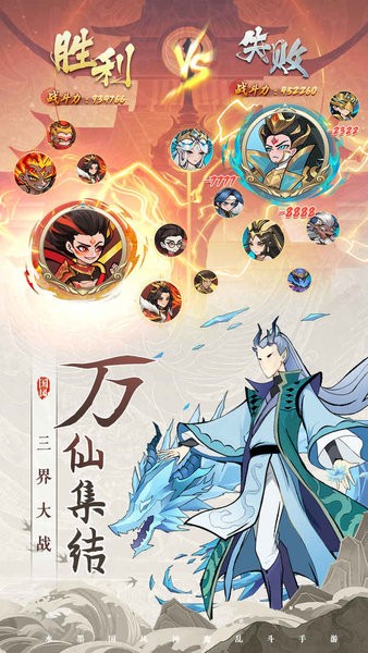 3、神化时代的英雄正等着你来培养,卡通的角色是如此可爱,让你能去领略到这场洪荒仙神的激烈竞技。