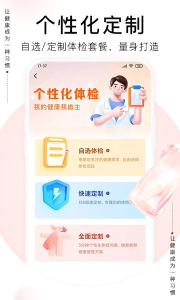 个人觉得这个APP挺不错的,尤其是它的个性化定制功能,可以避免过度检查或者漏检重要项目。而且还能通过问卷了解用户的健康状况,推荐合适的体检项目,这点真的很贴心。对于经常需要体检或者关注自身健康的人来说,用这个软件真的方便很多。另外,它还支持在线预约挂号、在线咨询医生等功能,可以说是一个全方位的健康管理平台。总的来说,这个APP在用户体验和服务上做得都很到位,值得推荐给有健康管理需求的人群。