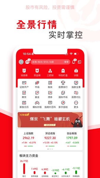 指南针股票手机版最新版又名指南针炒股神器,软件提供了专业的炒股功能,包括了证券开户、资金榜、特色盯盘、诊股、股票排行、指数全景、国际市场、模拟炒股等,还有期货、基金和债券等,全面的金融服务平台。
