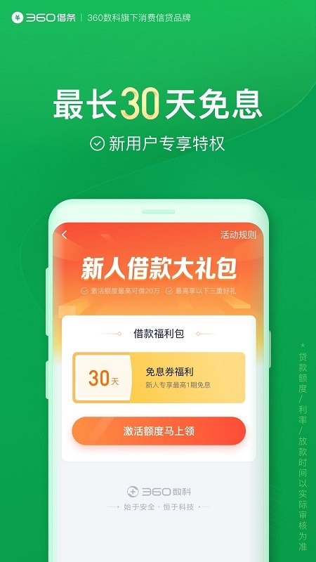360借条手机app是360数科旗下个人及小微信贷平台,为用户提供高额度、无抵押、方便快捷、安全正规的借款服务。帮助个人、生意人、企业主等解决资金周转需求,已有1、63亿用户选择360借条。下载360借条APP,简单申请,最快5分钟可放款,现在还有新人免息活动。持续使用,还可不断提升个人额度。
